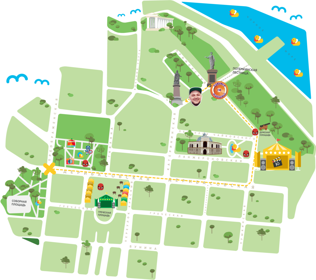 Будем и у моря, и в центре, побываем на Приморском Бульваре и на Потемкинской лестнице, прогуляемся по маршруту первоапрельского карнавального шествия. Приедем на одесскую киностудию и поздравим её с днем рождения. А еще проведем викторину, посвященную одесским фильмам. Победитель получит в подарок шабское вино Каберне!